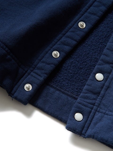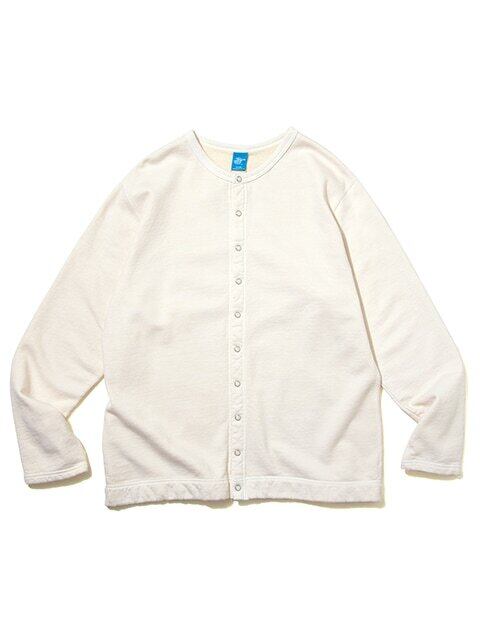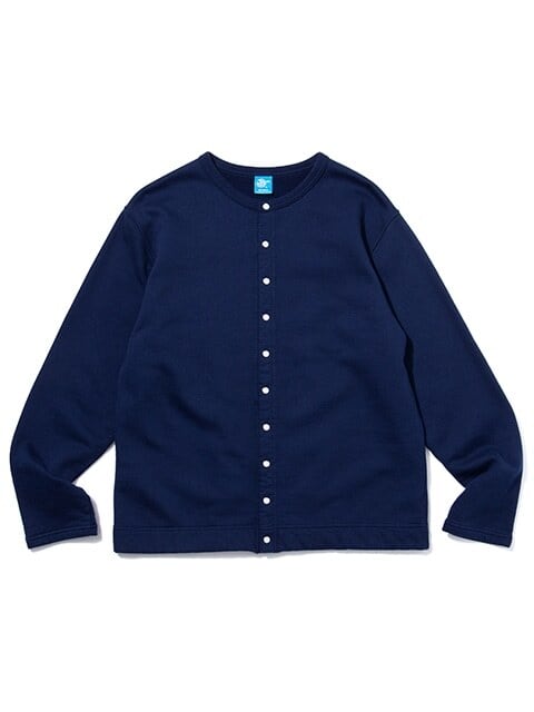 軽量ながらもしっかりと目の詰まった裏起毛スウェット生地(9オンスナップフリース)を使用したクルーネックカーディガン。